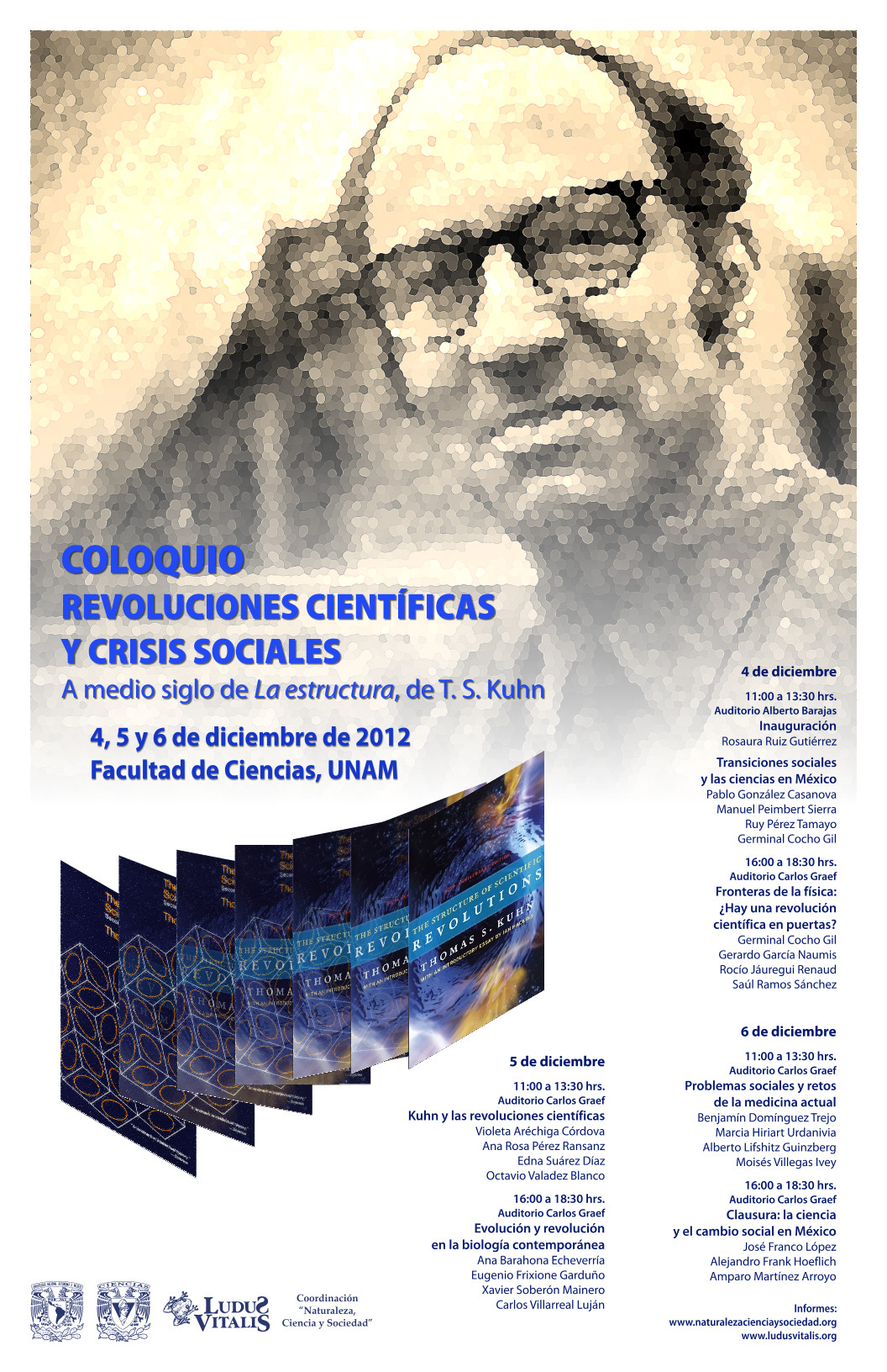 Conmemorando los primeros 50 años de la publicación de The Structure of Scientific Revolutions, de Thomas S. Kuhn, convocamos a un coloquio, pues dicha obra es clave en la comprensión social e histórica de la ciencia, representando no sólo un punto de quiebre en las consideraciones sociohistóricas de la ciencia, sino también una síntesis de problemas relacionados con la evolución y el cambio en las teorías y actividades científicas en un contexto social también cambiante y problemático como en el que estamos inmersos.